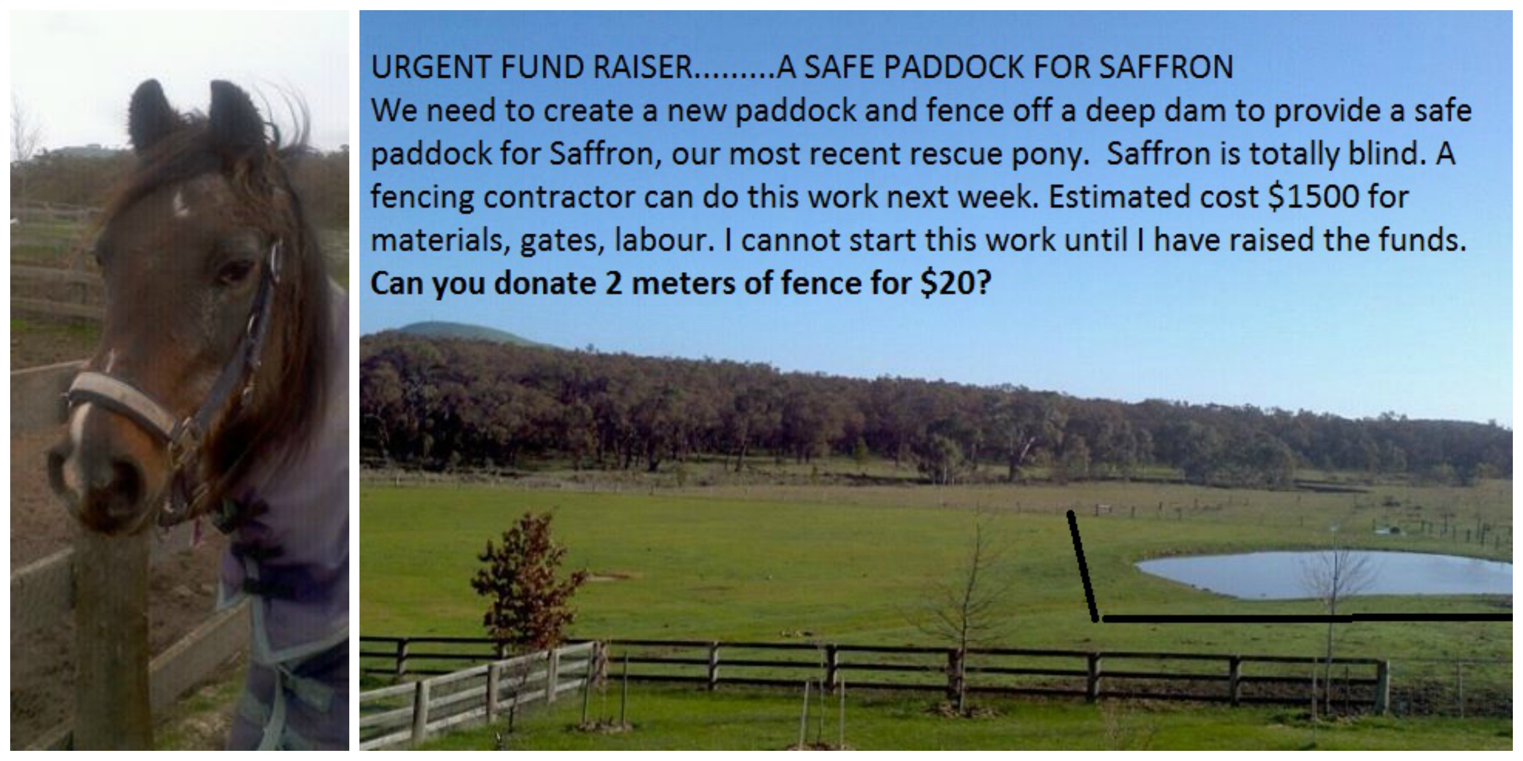 We are asking for supporters and anyone you can recruit, to contribute $20 to pay for two metres of fencing. Of course if you can assist with more we will not say no!