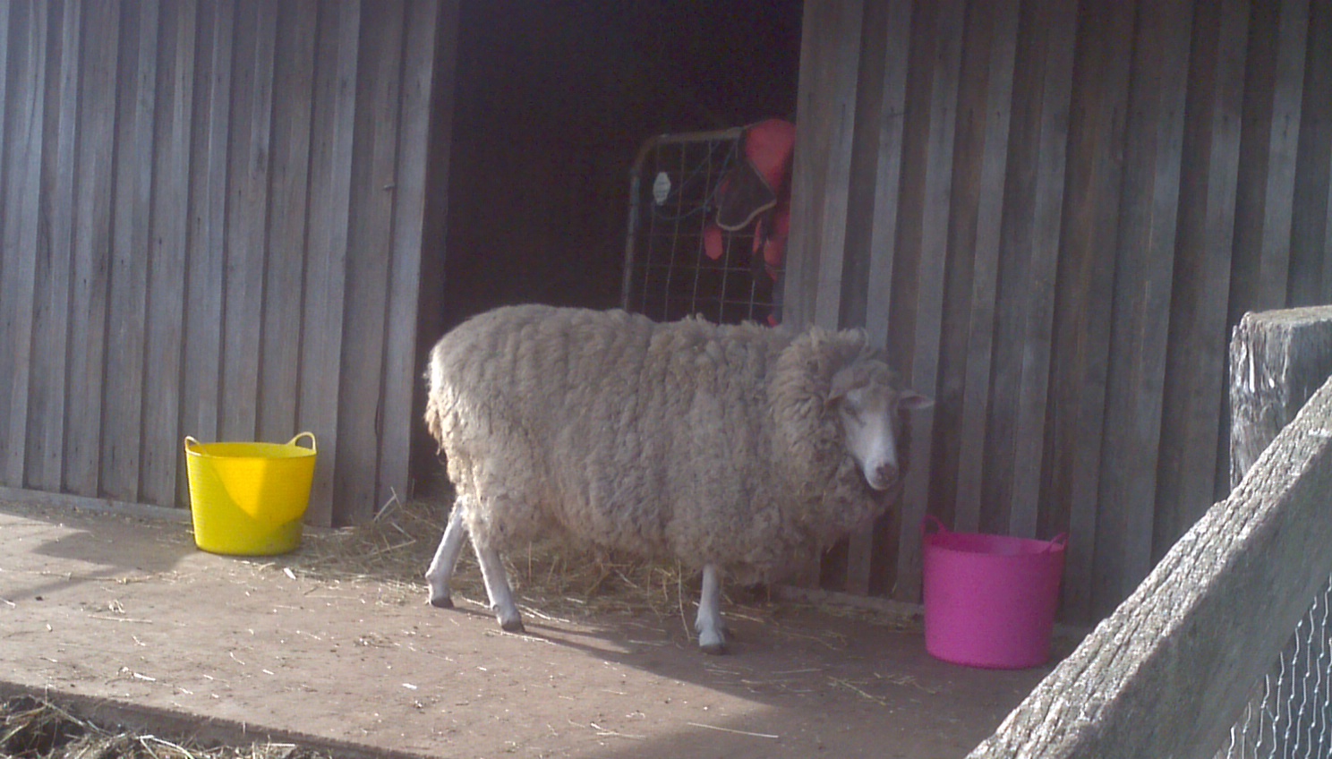 Wilma is heavy with fleece but given the cold weather and onset of winter, she will not be shorn until Spring. She will live in the yards for some time until we can gain her trust and reassure her that life here is safe.